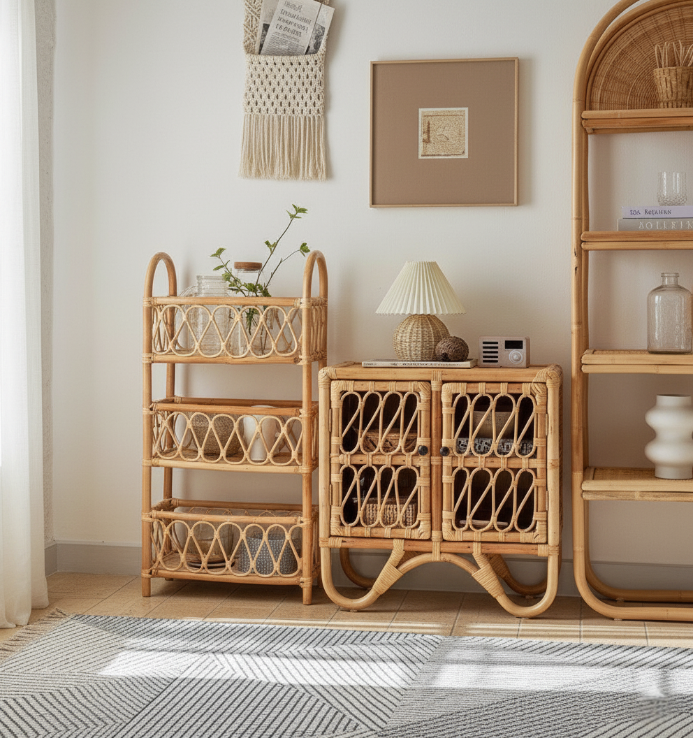 Yaşam alanınıza sıcaklık ve doğal bir dokunuş katacak, el yapımı bambu mobilya seti ile tanışın. Bohem ve modern tarzı bir araya getiren bu üçlü set, hem işlevsel hem de estetik bir çözüm sunar.