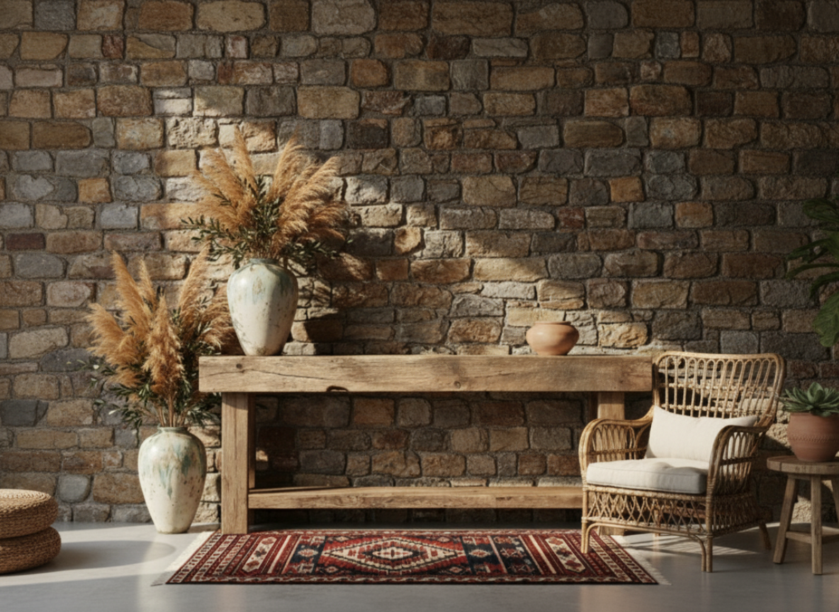 Görünüm: Ahşabın eskitme etkisi, sıcak tuğla duvar ve toprak tonlarındaki aksesuarlarla mükemmel uyum sağlayarak, mekana derinlik ve karakter katar.