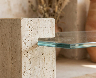 🪨 AXIS | Traverten & Cam Sehpa