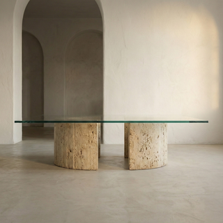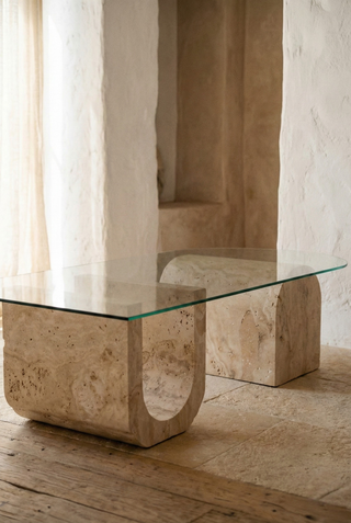 🪨 KION U | Traverten & Cam Orta Sehpa