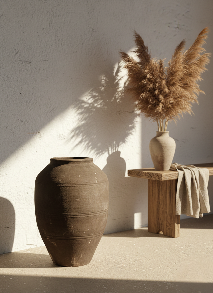 Evinizin her köşesine asaletli bir dokunuş katarken, antik çağların ruhunu ve gizemini modern yaşam alanlarınıza davet edin. Antik Miras Amphora Koleksiyonumuz, her biri özenle tasarlanmış, koyu terracotta tonlarındaki bu eşsiz parçalarla geçmişin büyüleyici estetiğini günümüze taşıyor. Organik formları ve el yapımı dokunuşlarıyla bu amphoralar, sadece bir dekorasyon objesi değil, aynı zamanda bir hikaye anlatıcısıdır.