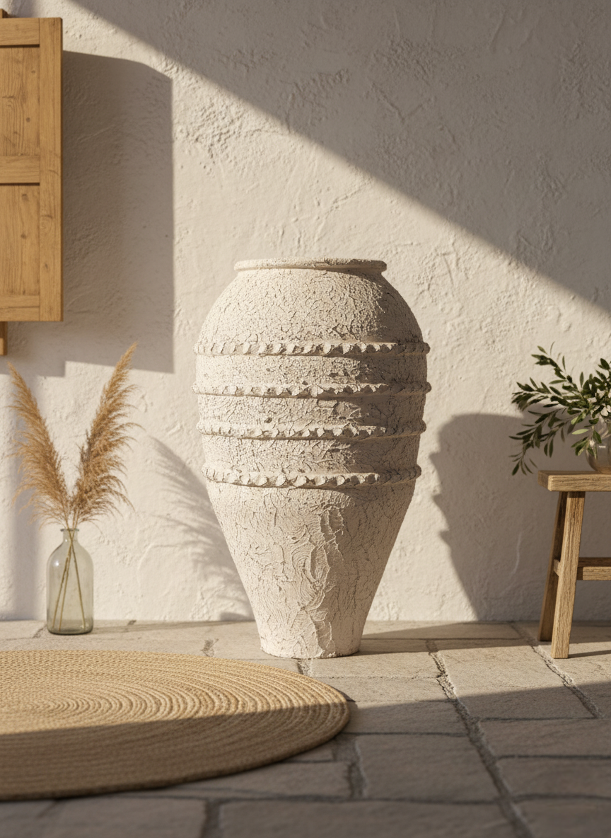 Ege Rüzgarı" Terracotta Amphora Koleksiyonumuz ile kendinizi Ege'nin büyüleyici atmosferine bırakın. Akdeniz'in dinginliğini ve bohem şıklığını evinize taşıyan bu özel seri, usta ellerde şekillenen her bir detayında yüzyıllık zanaatkarlığı yansıtır. Her biri özenle el yapımı olan bu amphora'lar, doğal terracotta'nın ruhuyla zenginleşirken, güneşin öptüğü kıyıların ve masalsı bahçelerin ilhamını taşır.