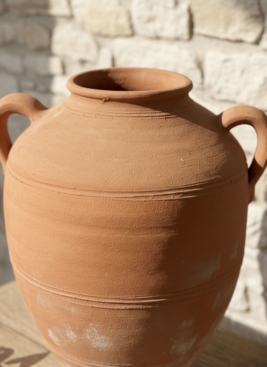 Otantik El İşçiliği: Her bir amphora, usta eller tarafından şekillendirilmiş olup, ince çatlakları ve yüzeyindeki doğal kusurlarıyla zanaatkarlığın imzasını taşır. Bu, her parçayı sadece size özel kılar.